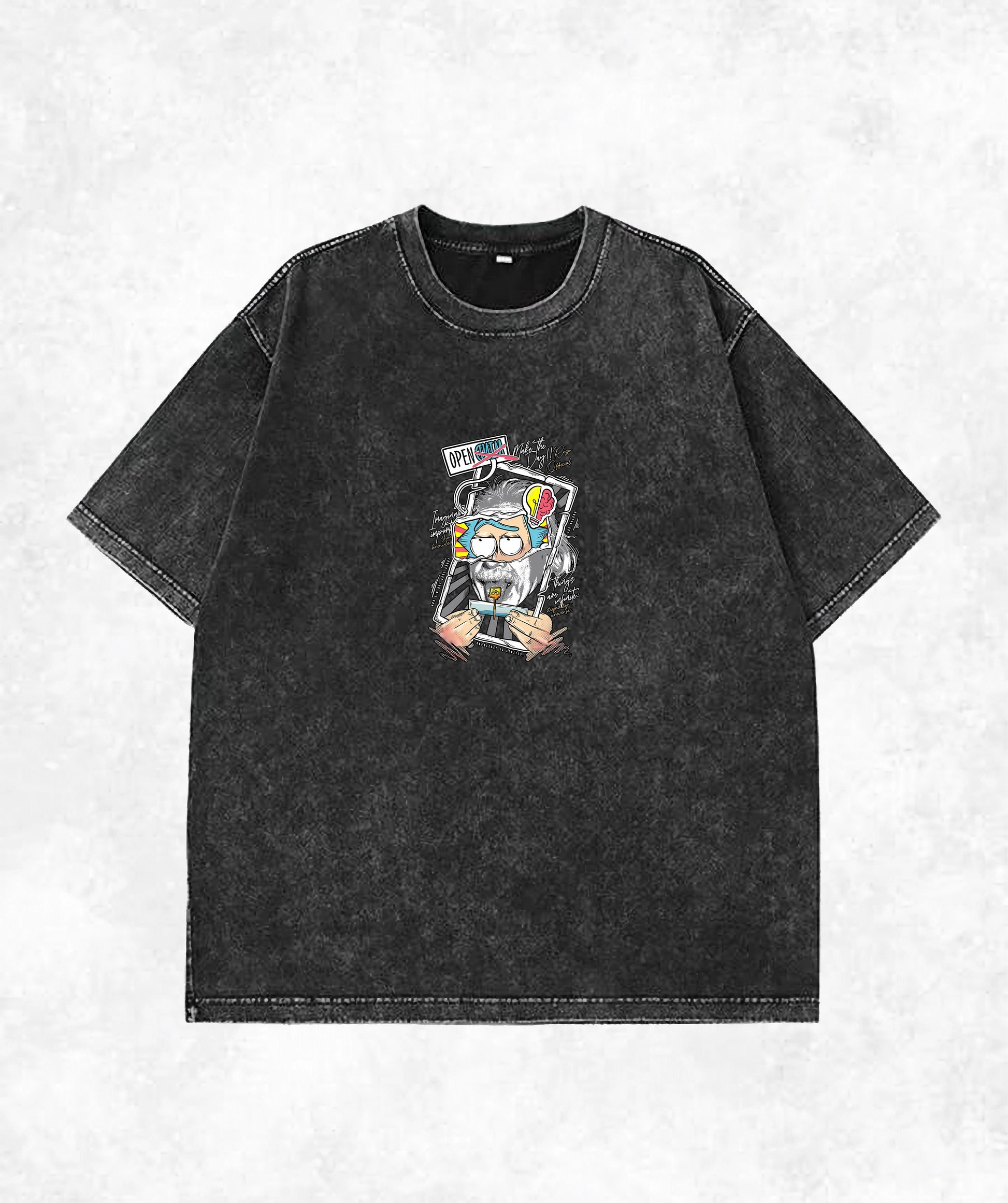 This t-shirt combines a vintage feel with a thought-provoking, surreal graphic. The acid wash finish gives it a unique, worn-in look, while the back features a vibrant, multi-layered design of an abstract human portrait. The artwork is a statement piece, perfect for anyone who appreciates professional graphic art and a comfortable, unique style.